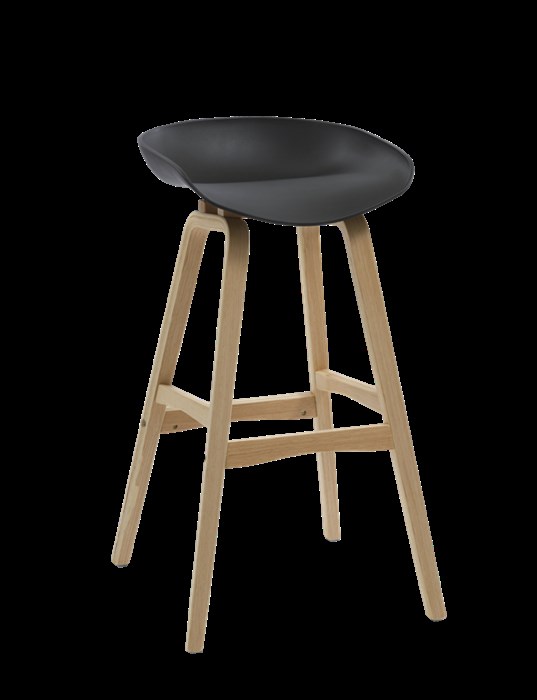 Virgo Bar Stool - Black Polypropylene Seat ASSEMBLED Oak Coloured Timber Leg And Frame 475mm W x 475mm D x 820mm H Seat Width 440mm, Seat Height 770mm 3 Year Warranty
