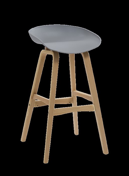 Virgo Bar Stool - Grey Polypropylene Seat ASSEMBLED Oak Coloured Timber Leg And Frame 475mm W x 475mm D x 820mm H Seat Width 440mm Seat Height 770mm 3 Year Warranty