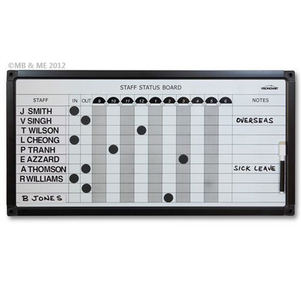 VisionChart Whiteboard Planner Staff Status 317x615mm Adelaide Direct Stationers