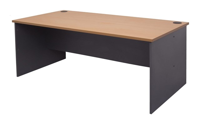 1800mm Open Slab End Workstation - Beech and Ironstone 1800mm W x 900mm D x 730mm H E0 Rated Melamine Board 2 x 80mm Dia Cable Entry Holes In Work Top 25mm T Worksurface 18mm T Underframe 5 Year Warranty