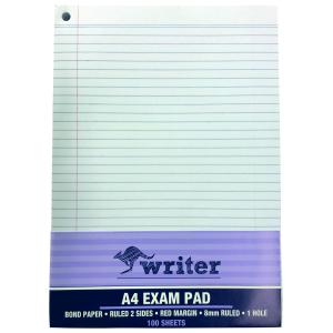 Writer Exam Pad 1 Hole with Margin A4 100 Leaf Each (Sold as Each, 10 in a Pack) Adelaide Direct Stationers