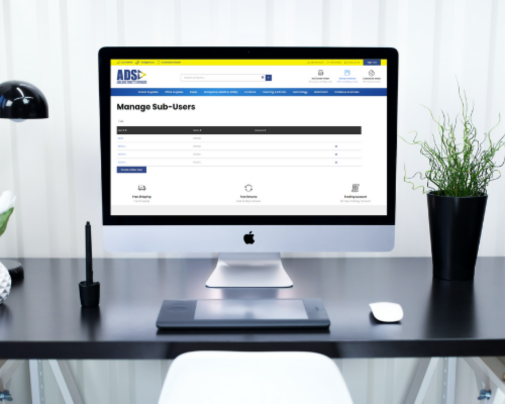 Centralize your department supplies and spend with a free custom ADS account. Organise your business procurement and finance under one main account with the ability to have multiple users (sub users), order maximums, order approval systems, restricted baskets and more.