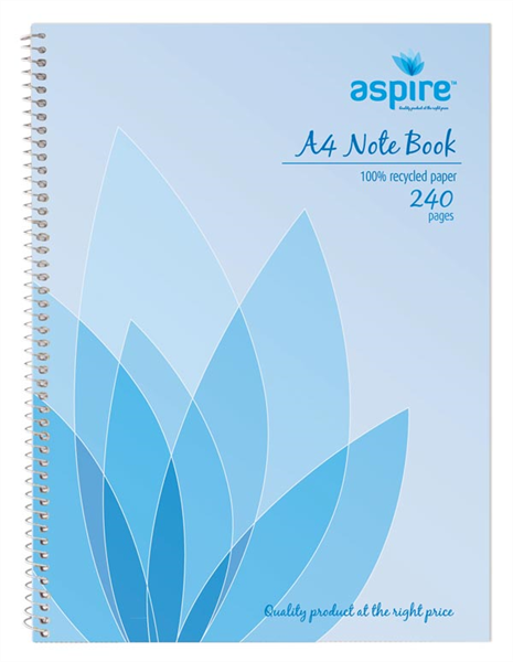 Aspire Recycled Spiral Notebook 240 Pages A4 (Sold as Each, 5 in a Pack) Adelaide Direct Stationers