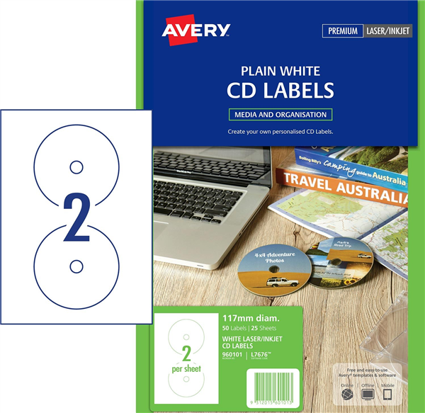 Avery CD Labels with Sure Feed 25 Pack Adelaide Direct Stationers