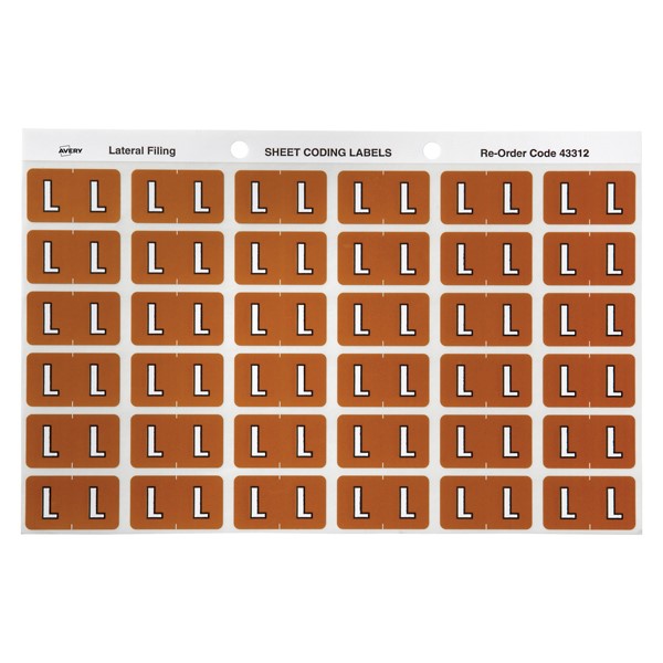 There are 180 mustard Alphabetical L Side Tab Colour Coding Labels in a pack with a size of 25mm x 38mm ready to stick straight onto the side tab of your Avery Lateral Files.