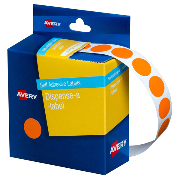 Avery Dispenser Dot Stickers 14mm Diameter Orange 1050 Pack (Sold as Each, 5 in a Box) Adelaide Direct Stationers