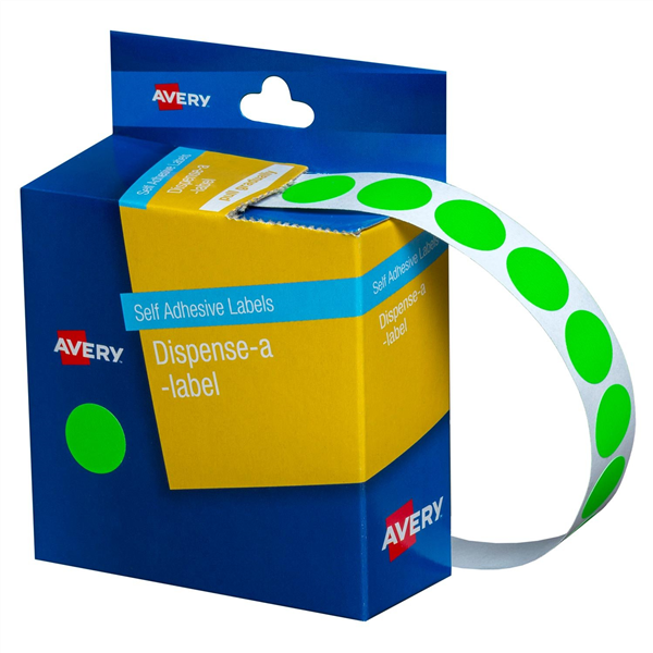 Avery Dispenser Dot Stickers 14mm Fluro Green 700 Box (Sold as Each, 5 in a Box) Adelaide Direct Stationers