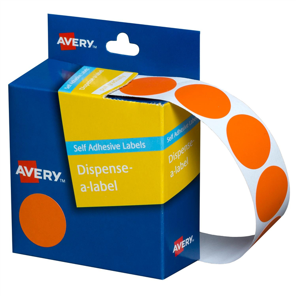 Avery Dispenser Dot Stickers 24mm Diameter Orange 500 Pack (Sold as Each, 5 in a Box) Adelaide Direct Stationers