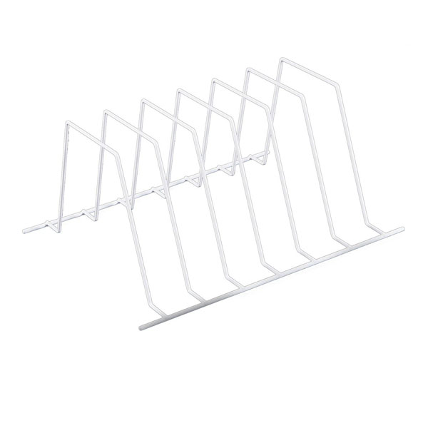 White file rack is 390 x 500mm with a straight edge suitable for upright filing in file cabinets, file cabinet drawers and shelf filing