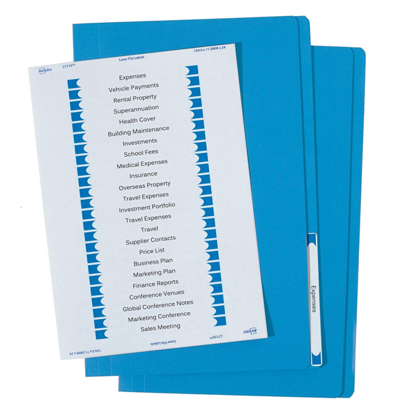 Avery Folder with Labels Manilla Foolscap Blue 20 Pack
