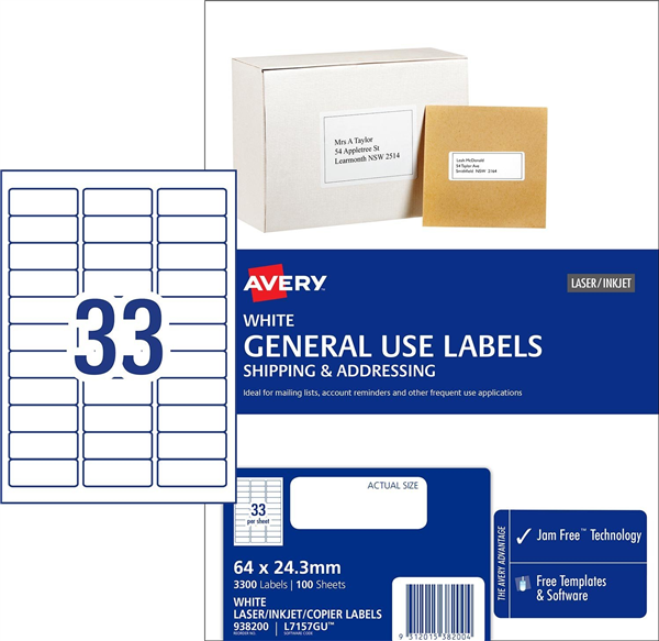Avery General Use Labels 33Up White 100 Pack Adelaide Direct Stationers