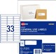 Avery General Use Labels 33Up White 100 Pack