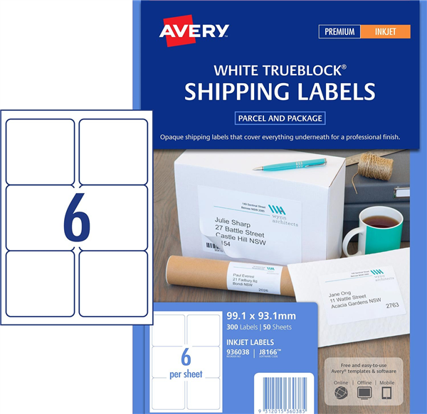Avery J8166 Parcel Inkjet Labels 99.1x93mm 50 Pack Adelaide Direct Stationers