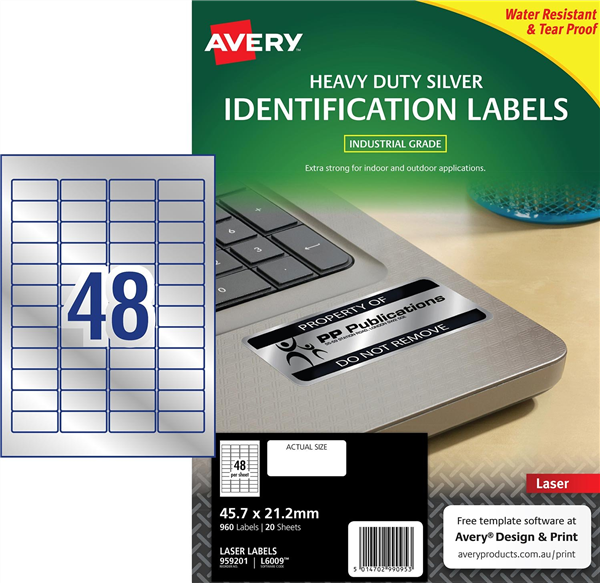 Avery L6009 Laser Labels 45.7x21.2mm Silver 20 Pack Adelaide Direct Stationers