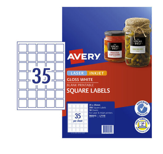 Avery L7119 Labels 35Up Square Gloss White 35 x 35mm Pk10 Adelaide Direct Stationers