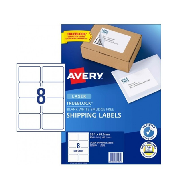 Avery L7165 TrueBlock Laser Labels 8UP Parcel White 100 Box Adelaide Direct Stationers