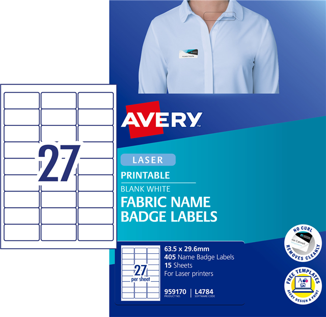 Avery Label Name Badge 27Up Fabric White 15 Pack Adelaide Direct Stationers