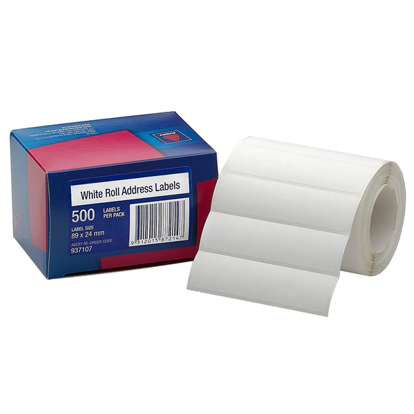 Avery Roll Address Labels 89x24mm White 500 Box Adelaide Direct Stationers