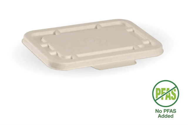 These 500ml & 600ml natural bagasse food container lids are certified industrially compostable, made with no added PFAS.