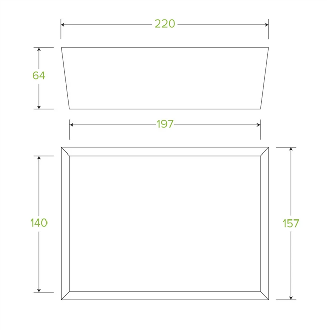 64mm H x 140mm W x 197mm L