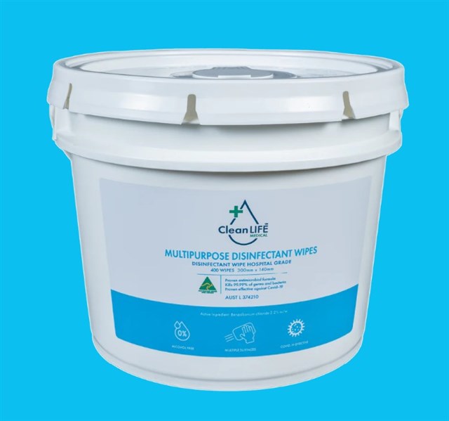 Each tub contains 400 large wipes (180 x 260mm), impregnated with a low-level biocide featuring Benzalkonium Chloride (0.4% w/w) and EDTA (0.2% w/w)