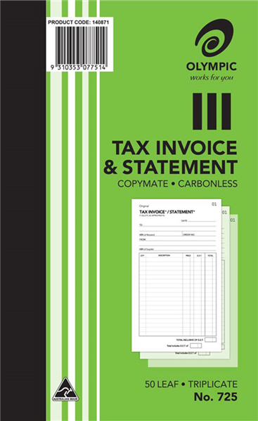 Olympic 725 Invoice and Statement Book Triplicate (Sold as Each, 10 in a Pack) Adelaide Direct Stationers
