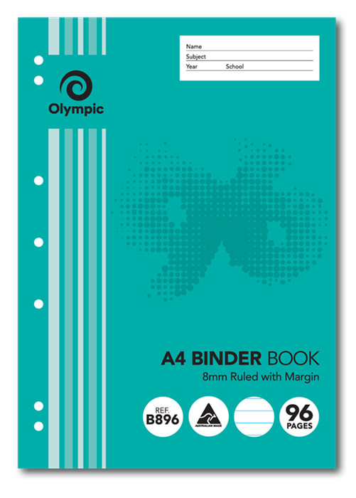 Olympic A4 Binder Book 96 Page 8mm Ruled (Sold as Each, 10 in a Pack) Adelaide Direct Stationers