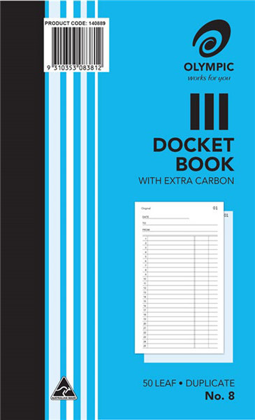 Olympic no.8 Duplicate Docket Book Blue (Sold as Each, 10 in a Pack) Adelaide Direct Stationers