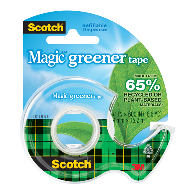 Made from 65% of recycled or plant-based materials, this Scotch Magic Greener Tape is a more environmentally friendly version of the original matte-finish, invisible tape, with the same great performance