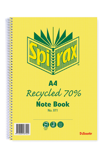 Spirax 811 Notebook 240 Pages Recycled A4 (Sold as Each, 5 in a Pack) Adelaide Direct Stationers